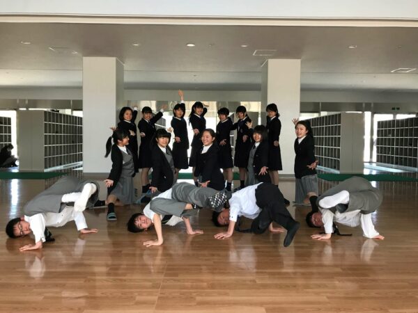 月曜日から金曜日(土曜日)の放課後、昇降口吹き抜け下で活動しています。ヒップホップを中心としてジャズやブレイクなどの練習に取り組んでいます。音楽選定から振り付け、演出までを自分たちで行っています。経験者もいますが、多くの部員が未経験であり、高校からダンスをスタートしても決して遅くありません。