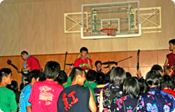 建学祭の際、野外ステージで大勢の人達に自分たちの音楽を聞いてもらう。