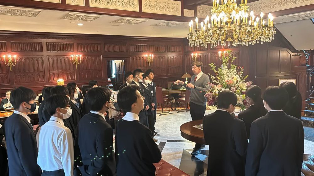 22日、サイエンスコース、グローバルコースの2年生が「British Hills」(福島県・天栄村)での2泊3日の研修に出発しました。中世イギリスの荘園領主の建物をメインにした環境の中で、語学と、その背景としての歴史・文化を学びます。Manor house のツアーで女王や王の部屋、書斎などを見学後、授業開始となりました。