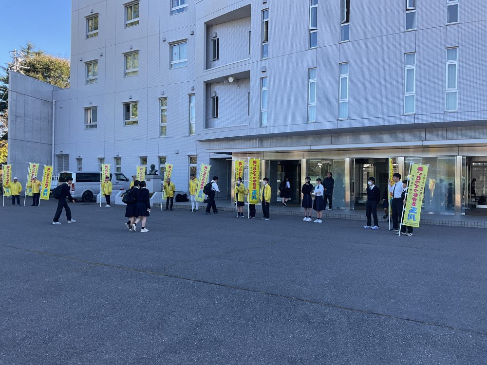 10月8日、街頭啓発活動の一環として、玉川地区コミュニティ運営協議会・玉川地区社会福祉協議会・本校生徒会本部役員らが、登校する生徒に「あいさつ運動」を実施しました。茅野市によると、今月いっぱい市内すべての中学校・高校において順次運動を展開していくとのことです。