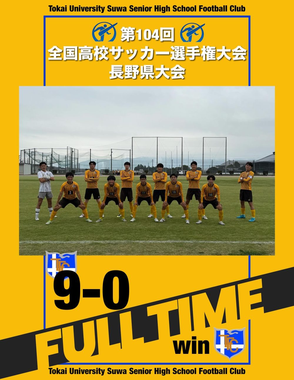 10月11日、現在開催中の「第104回全国高校サッカー選手権大会長野県大会」において、3回戦を突破しました。4回戦は10月18日、松本平広域公園サッカー場において13時30分キックオフ、赤穂高校と対戦します。応援よろしくお願いします!《3回戦》東海大諏訪 ○ 9-0 ● 辰野・高遠・岡谷南(3前半0、6後半0)