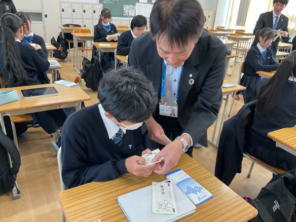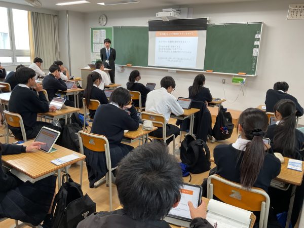 10月25日、1年生の「高校現代文明論」の授業では証券・金融業界や大学・専門学校、国や自治体、地元企業等から講師を迎え、ビジネスや金融リテラシーの育成、企業活動の社会的意義や人間関係の構築などの講義を受講しました。本校では定期的に学問の世界や社会システム、国家行政の一端に触れ、キャリアについての意識形成を図っています。各クラスの講義概要と感想文は次のとおり(講師敬称略)。