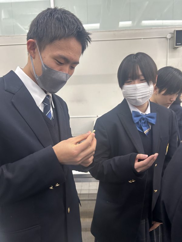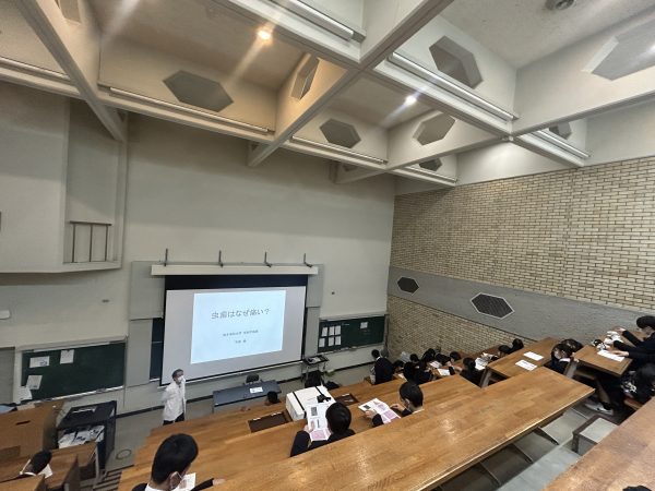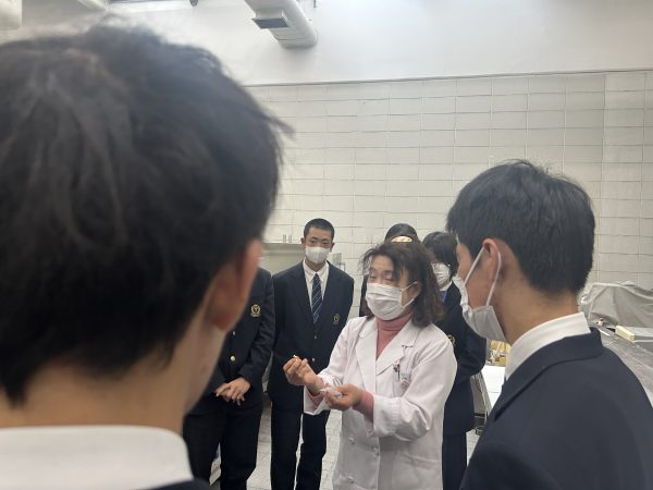 12月4日、グローバル&サイエンスコースの1年生が、松本歯科大学で研修しました。大学の説明、歯科衛生士・歯科医師について、高校生のうち身につけておくこと、大学が求める人材など様々な内容について説明がありました。実習の教室では鋳造を見学しました。歯の仕組みについての講義を受け、実際に、電子顕微鏡で歯の組織を観察しました。
