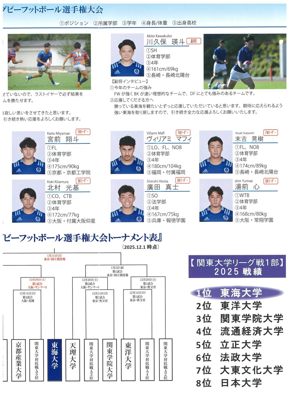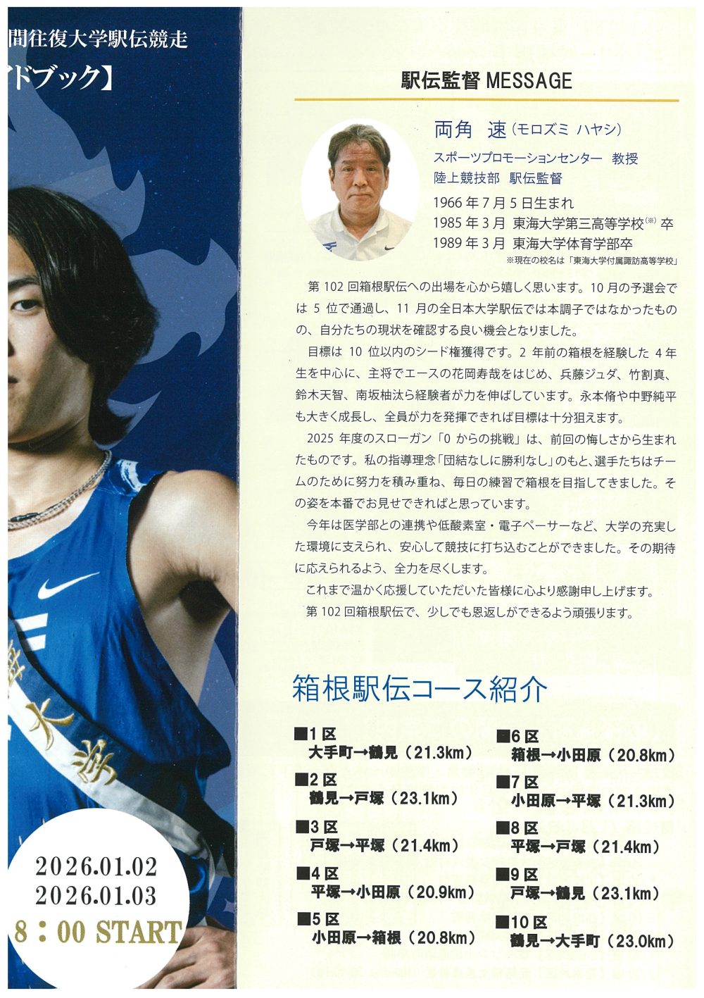 年末から年始にかけて東海大学のプレーが楽しみです。正月2日にスタートする箱根駅伝のエントリー候補選手が発表されました。チームの監督は本校OBの両角速教授(1985年卒)。佐久長聖高で多くの長距離ランナーを育成し、高校駅伝王国・長野の基礎を築きました。2011年から東海大学の監督を務めています。ラグビーは関東大学1部リーグ戦・同率の東洋大学を1点差で破り、全勝優勝。大学選手権では12月20日にベスト4を狙います。お楽しみに。