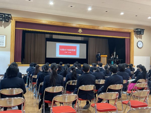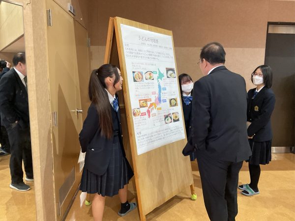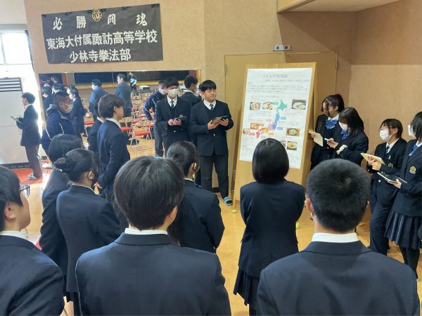 1月31日、グローバルコース、サイエンスコースの2年生が4月から取り組んできた課題研究についての最終発表を開催しました。グローバルコースは6グループがポスターセッション、サイエンスコースは11グループがプレゼン発表を行いました。最後にアフラック生命保険株式会社 高橋様、がんサポートおむすび 小口様から講評をいただきました。