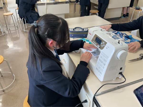 2月10日、2年家庭科の実習で、自分の作りたいデザインを考え、完成品を思い描きつつ、一つひとつに思いを込めて制作しました。生徒たちは黙々と手を動かし、集中して取り組む姿が印象的でした。また、使わなくなったタオルを活用し、雑巾を作りました。1枚のタオルから教室用と自分用の2つを作ることができ、リメイクの大切さや物を無駄にしない心を学びました。環境にもやさしい、エコな取り組みです。