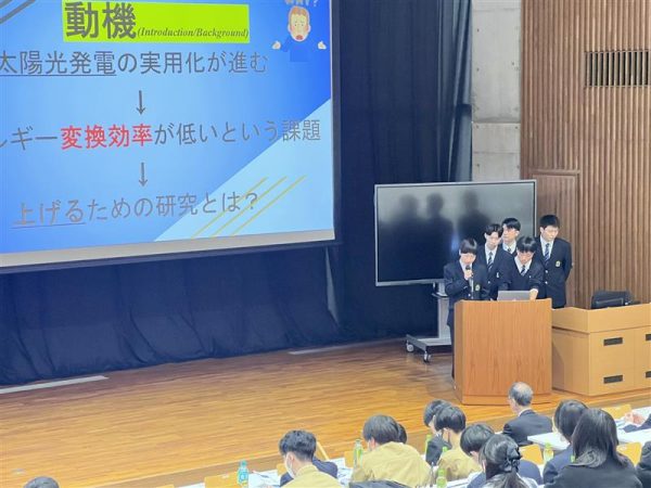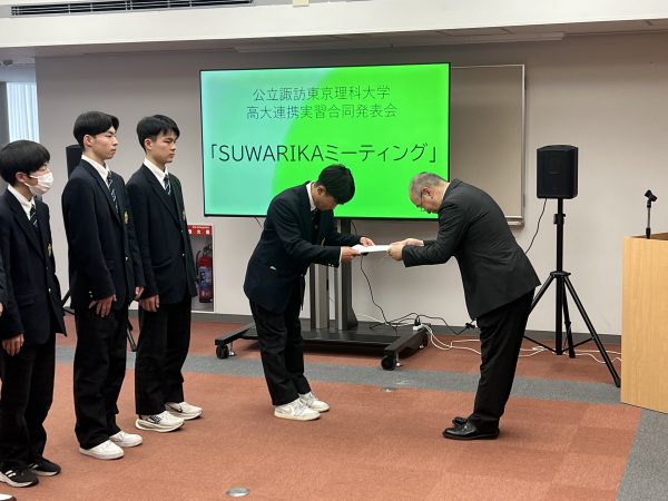 2月14日、理数科課題研究の物理班公立諏訪東京理科大学で開催された「高大連携実習合同発表会SUWARIKAミーティング」において「光透過型有機薄膜太陽電池の活用」について発表をしました。