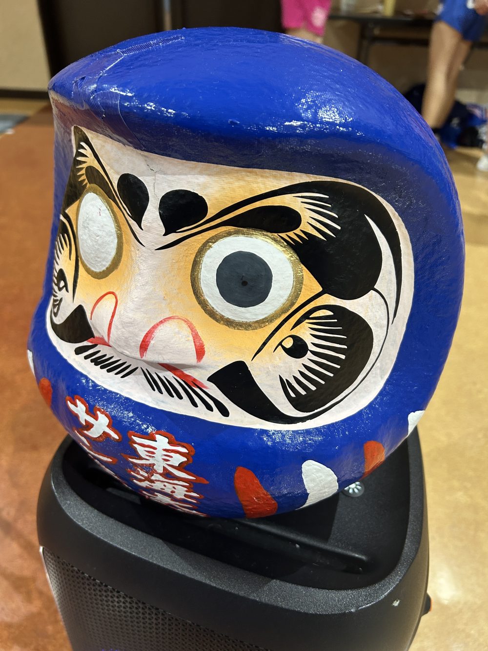 先月の全日本選手権では初のベスト10入りで決勝トーナメントに進出したチアリーディング部。大会ではいつも部員の演技を見つめてきた「必勝金だるま」のデザインが一新されました。新年度でのさらなる得点アップを目指し、ユニフォームと同系色を施して大会会場で仲間としての「一体感」の形成をねらっています。