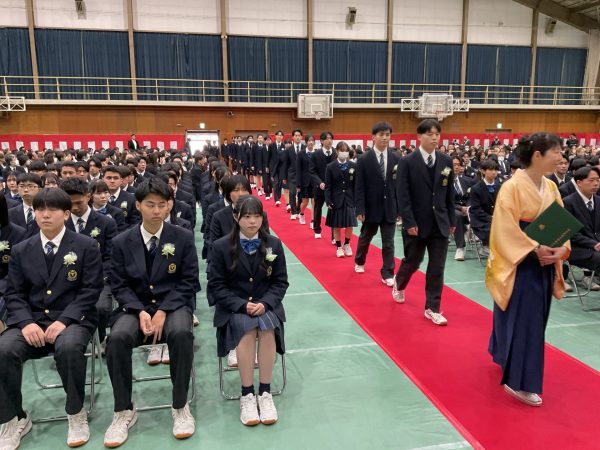 3月2日、第61回卒業証書授与式を挙行しました。学窓を巣立ち、新たなステージを歩み始めます。涙をこらえながら卒業生に言葉を贈る中村校長、総代や答辞で登壇する生徒の凛々しい姿…今年も式典は終始厳粛に進行しました。式後のキャンパスは写真撮影や挨拶などでしばしにぎわっていました。明日からは次の人生が忙しく、過去をしみじみ振り返る余裕もなくなっていくでしょう。進め、青春。幸多かれと祈ります。
