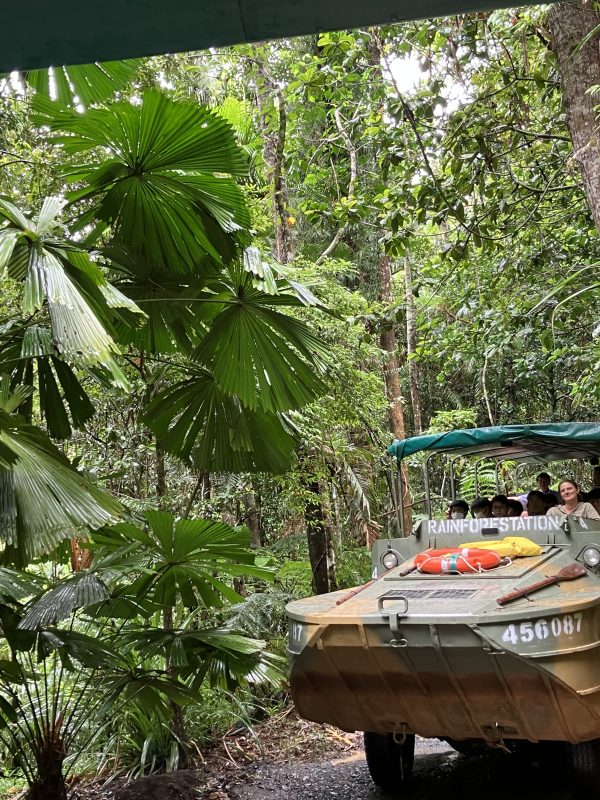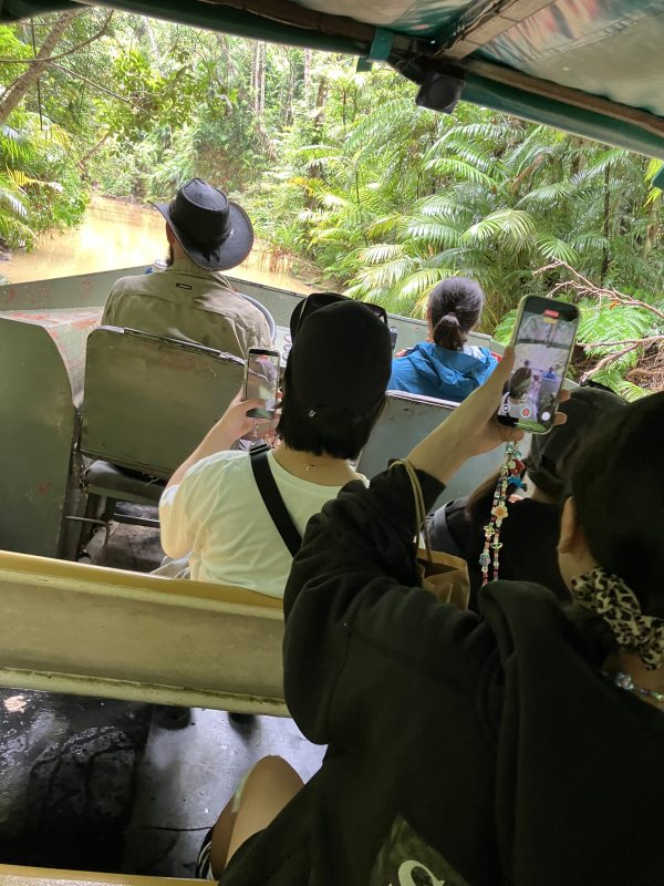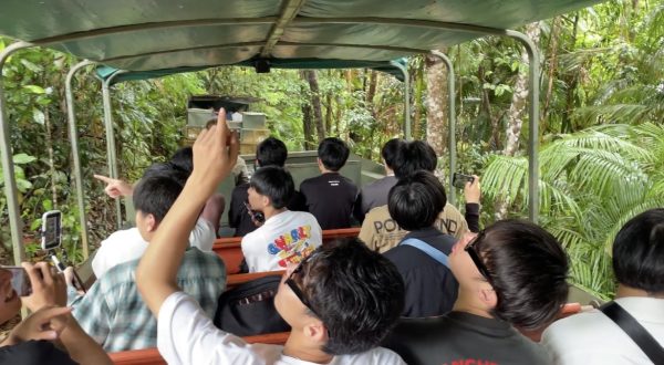 【3月6日キュランダ観光】観光列車キュランダ鉄道乗車体験後ワイルドライフパークでコアラやカンガルーと触れ合い、アボリジニー伝統楽器やダンスパフォーマンスを見学し、水陸両用のアーミーダック乗車体験をした後にキュランダマーケットに立ち寄り、ケアンズ市内に戻ってきました。グループごとケアンズ最後の夕食を食べ、明日の飛行機で成田空港に向かいます。